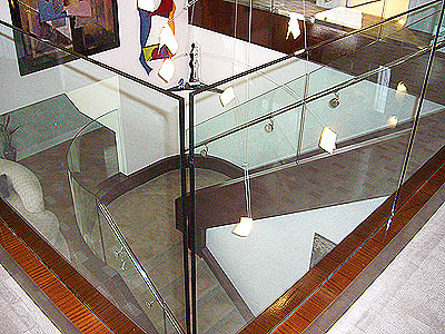 Flat and bent glass railing.